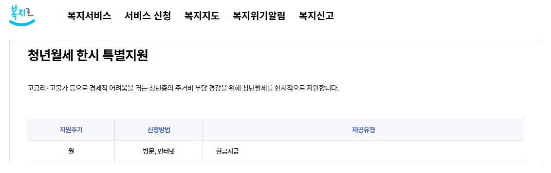 - 청년 월세 한시지원(바로가기): 월 최대 20만 원, 소득 중위 150% 이하 대상