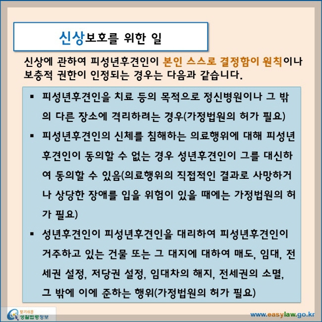 재산을 관리하고 병원 계약 등을 체결할 수 있도록 돕는 제도입니다.