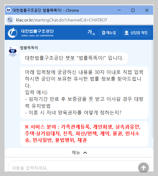 24시간 언제든 상속이나 임대차 계약 등에 대해 질문할 수 있는